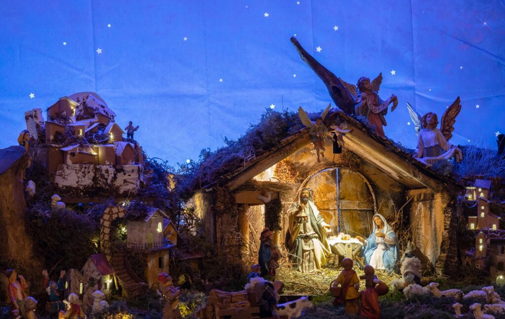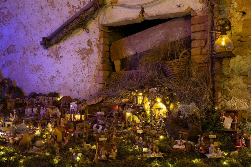 Vogliamo invitarvi a Prascorsano a scoprire il nostro presepe meccanico, realizzato con pezzi artigianali provenienti direttamente da Napoli, culla della tradizione presepiale. Il presepe, che rappresenta la natività, è allestito nella vecchia casa di famiglia, Ca’d Pianass nella vecchia stalla con le volte a mattoni. La stalla, con il suo fascino rustico e autentico, ci riporta all’atmosfera di un tempo passato, il tempo dei nostri nonni, creando un ambiente perfetto per rivivere la magia del Natale. Personaggi in movimento e scene curate nei mini dettagli regalano un’esperienza suggestiva e coinvolgente, capace di portare nelle case lo spirito natalizio.